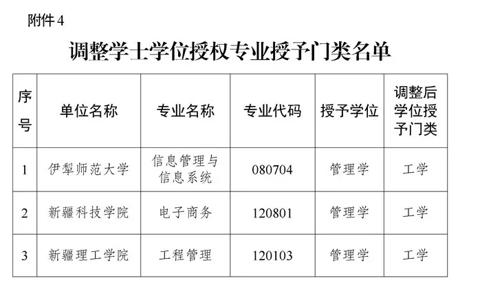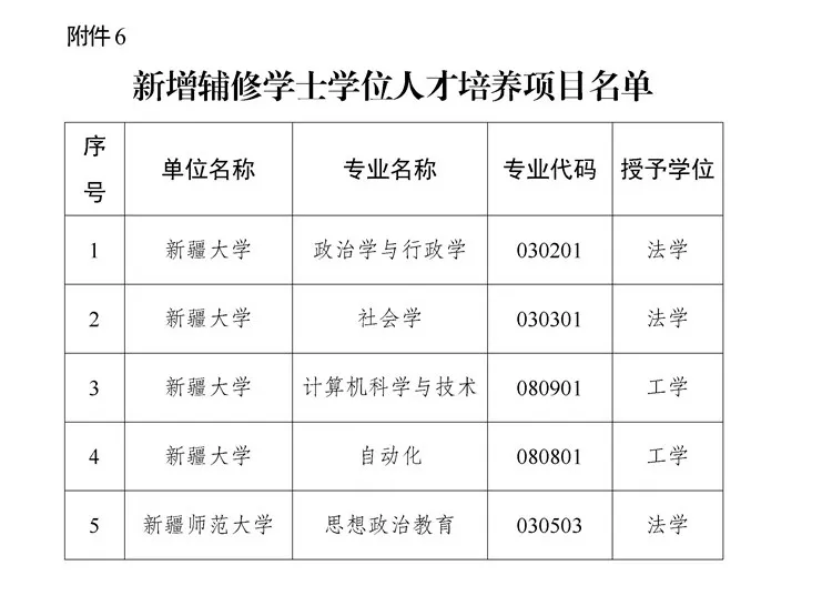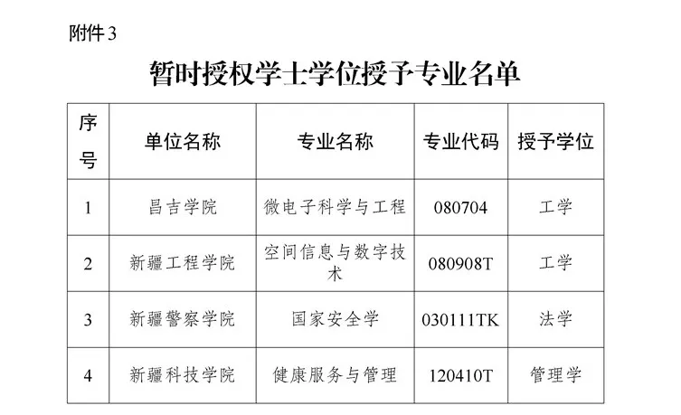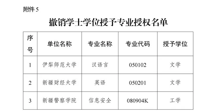近日,新疆维吾尔自治区教育厅发布《关于对2025年自治区学士学位授权审核结果的公示》,本次公示共涉及6类名单:新增学士学位授予单位名单、新增学士学位授予专业名单、学士学位暂时授权专业名单、调整学士学位授权专业门类名单、撤销学士学位授予专业名单、新增辅修学士学位人才培养项目名单。