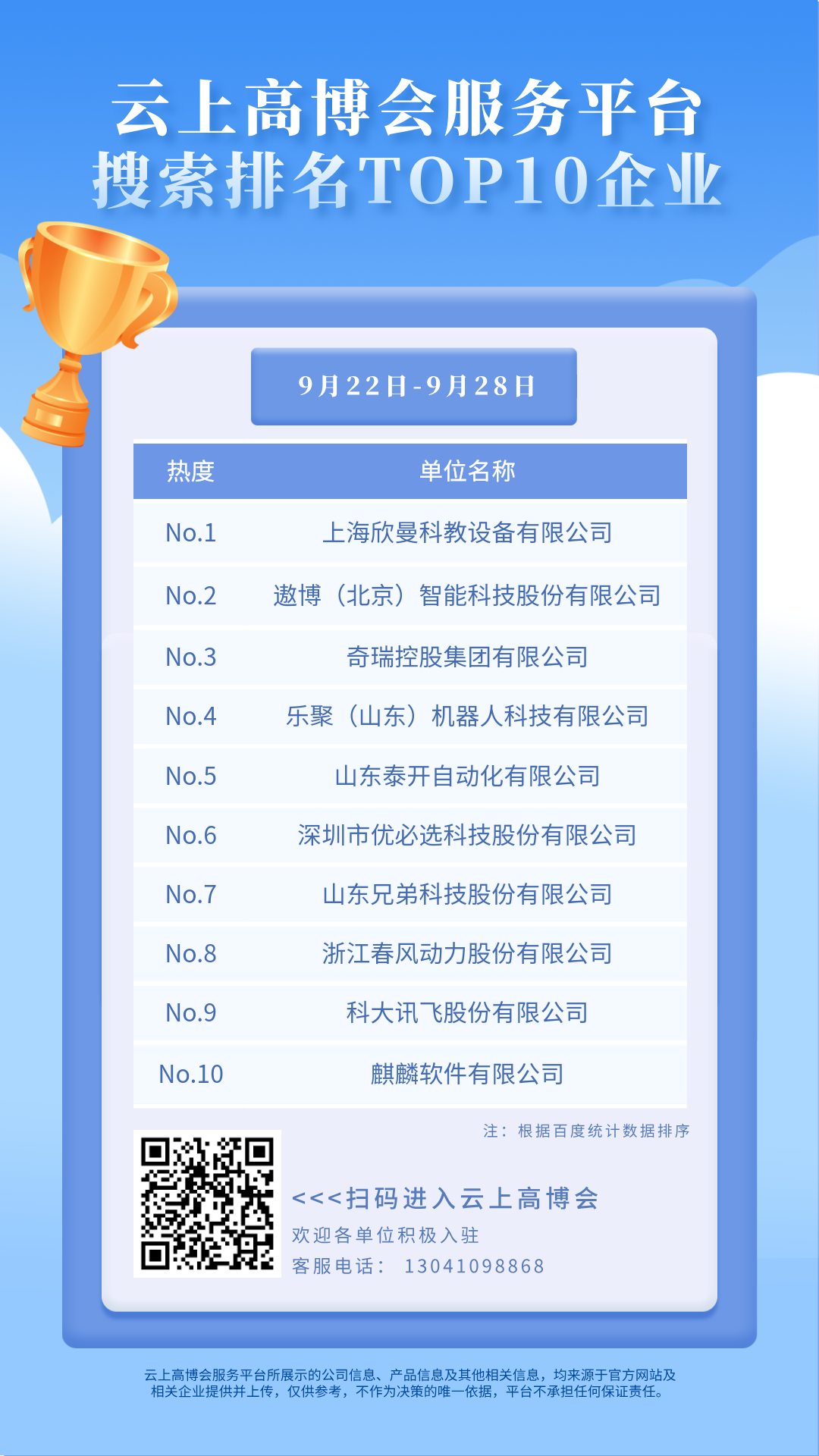 云上高博会热搜榜(9.22-9.28)TOP10企业、高校榜单来啦