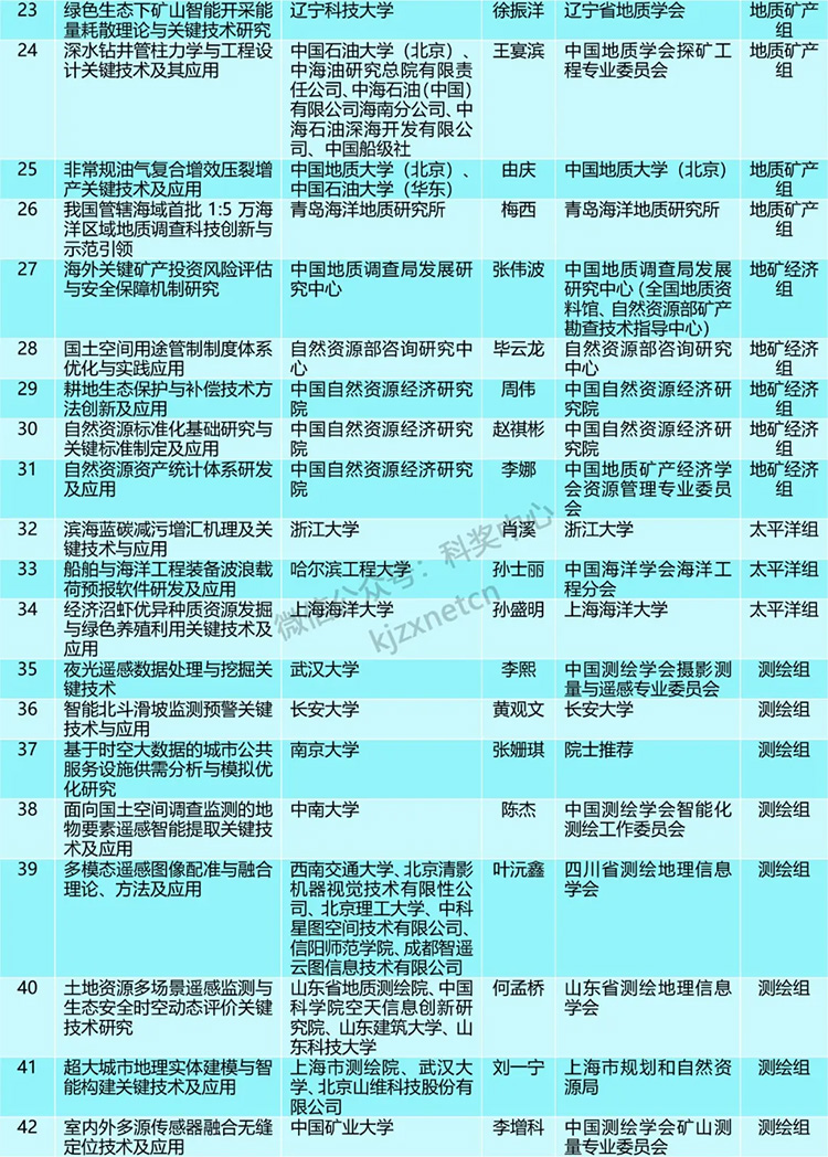 10月22日,自然资源科学技术奖励委员会办公室公示2024年度自然资源科学技术奖评审结果。根据《自然资源科学技术奖章程(暂行)》有关规定,2024年度自然资源科学技术奖经奖励委员会终审,产生科技进步奖159项,其中特等奖4项、一等奖54项、二等奖101项;科技进步奖(找矿奖)14项,其中一等奖5项、二等奖9项;青年科技奖50项,评审结果详见附件。现对评审结果进行公示,公示期10个工作日,公示时间:2025年10月22日至11月4日。