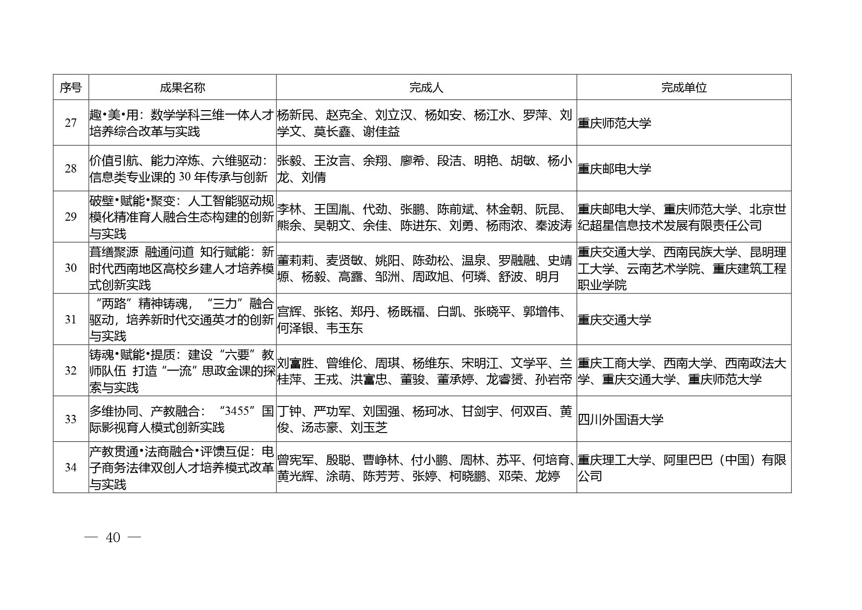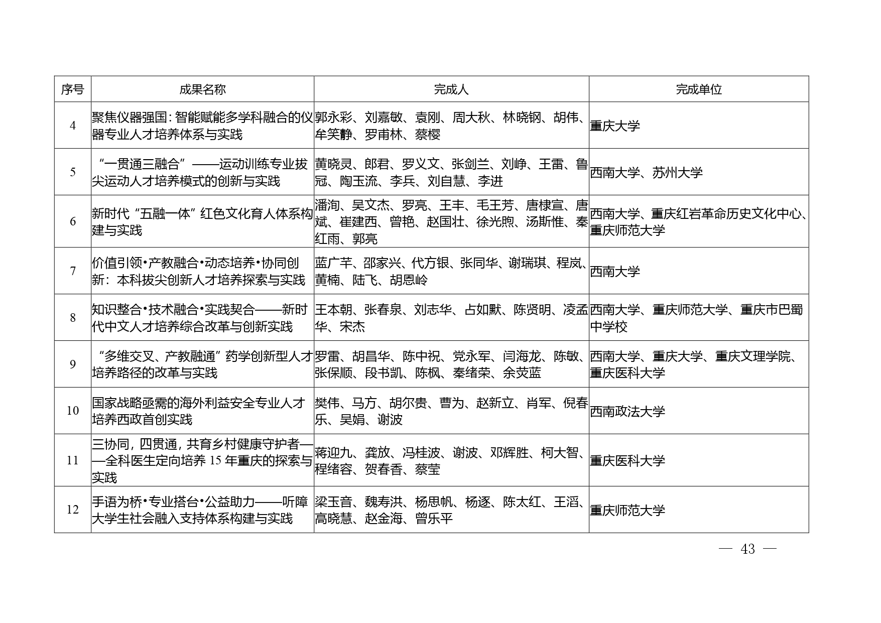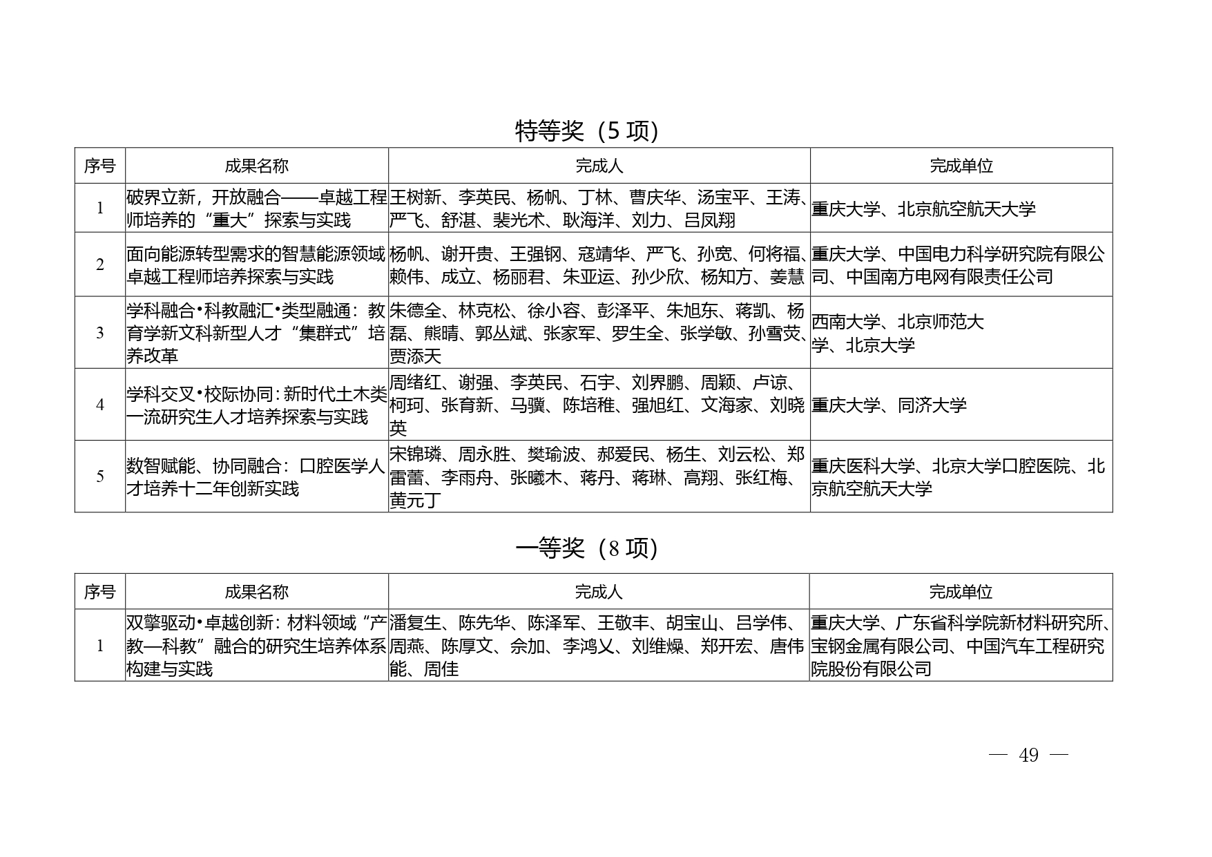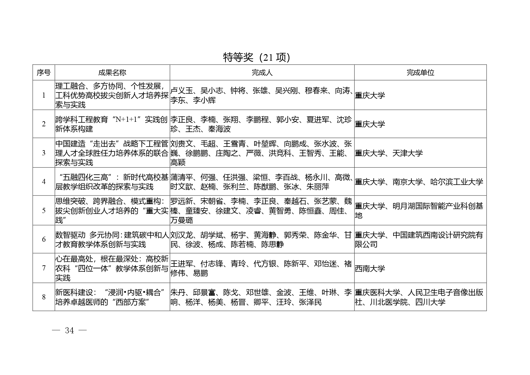 本科特等奖21项!2025重庆市教学成果奖拟获奖项目名单公示