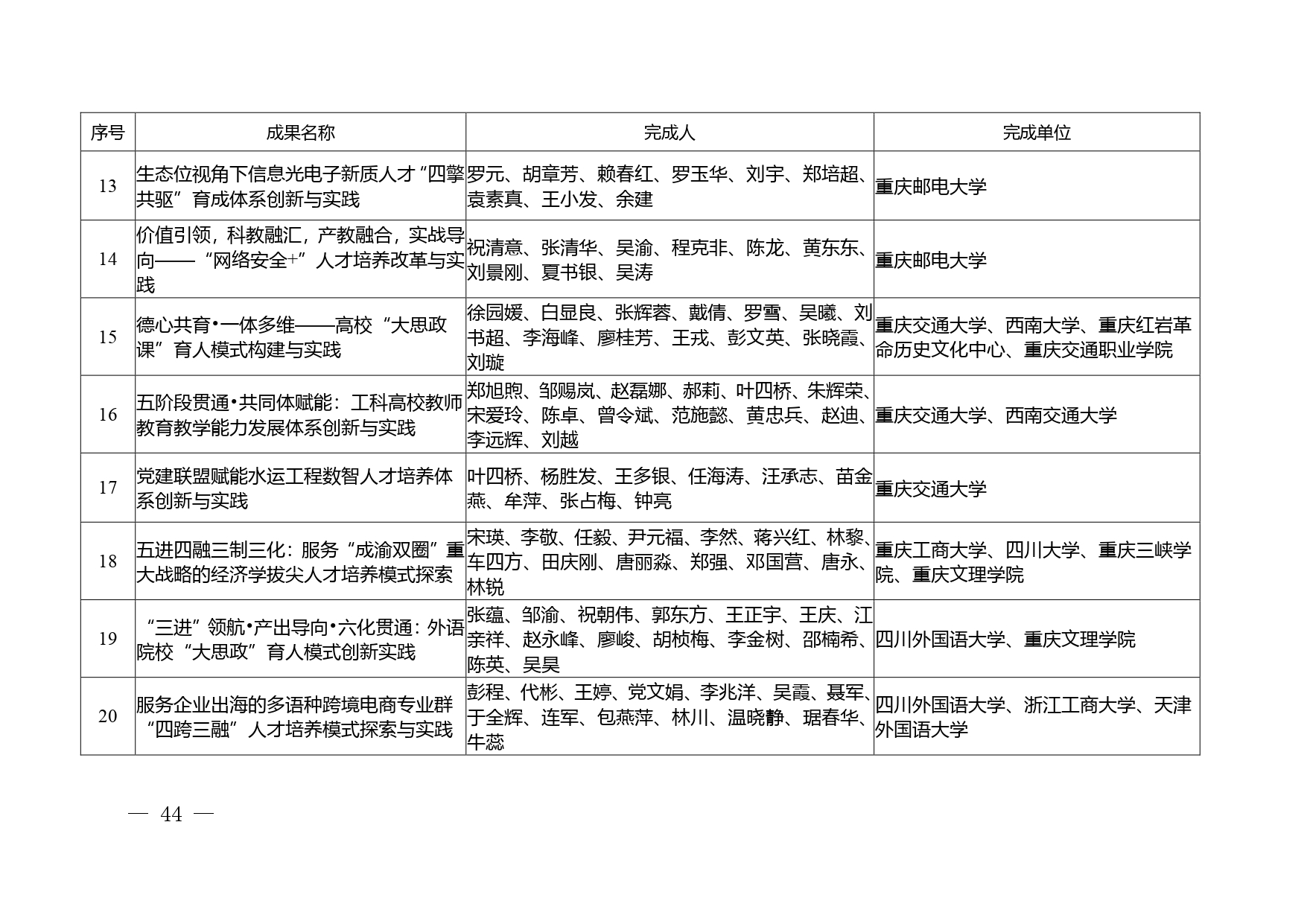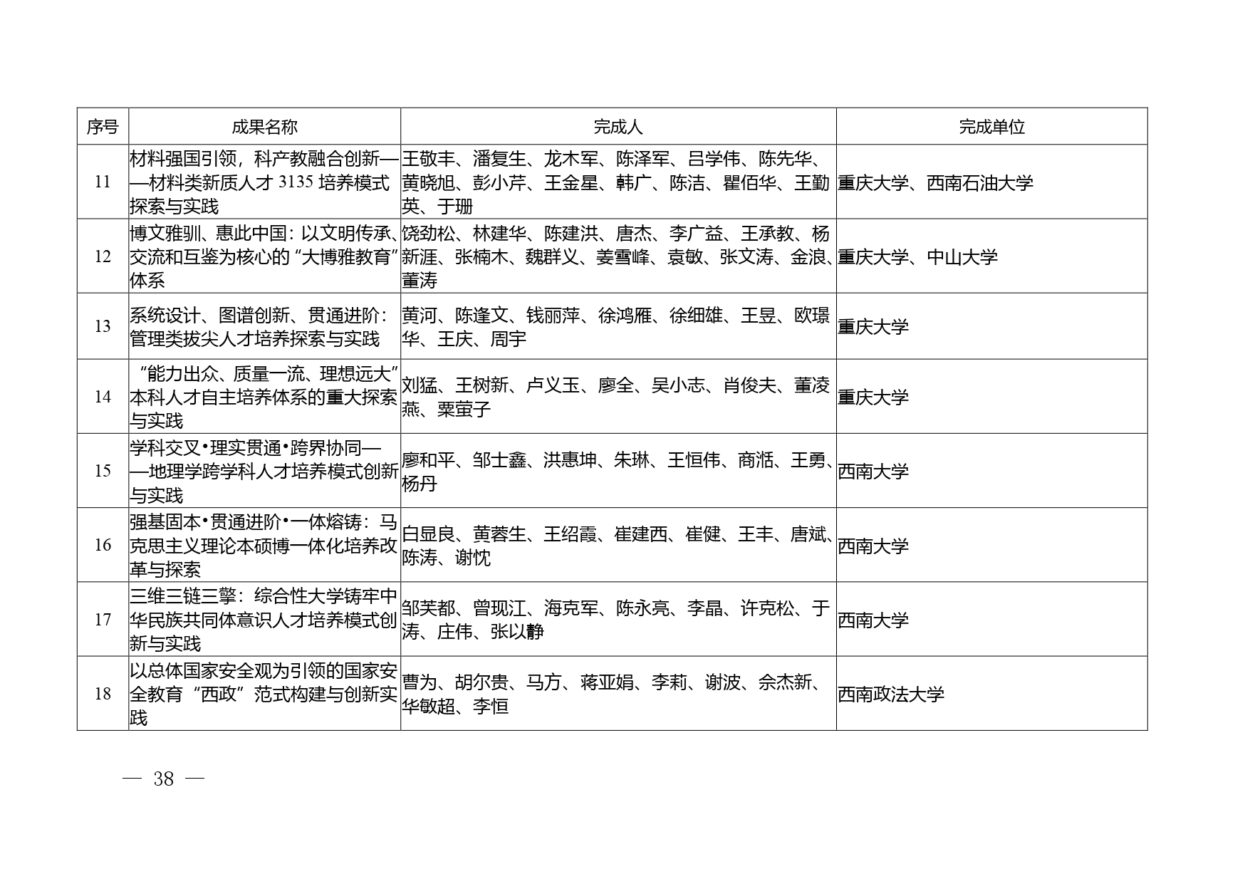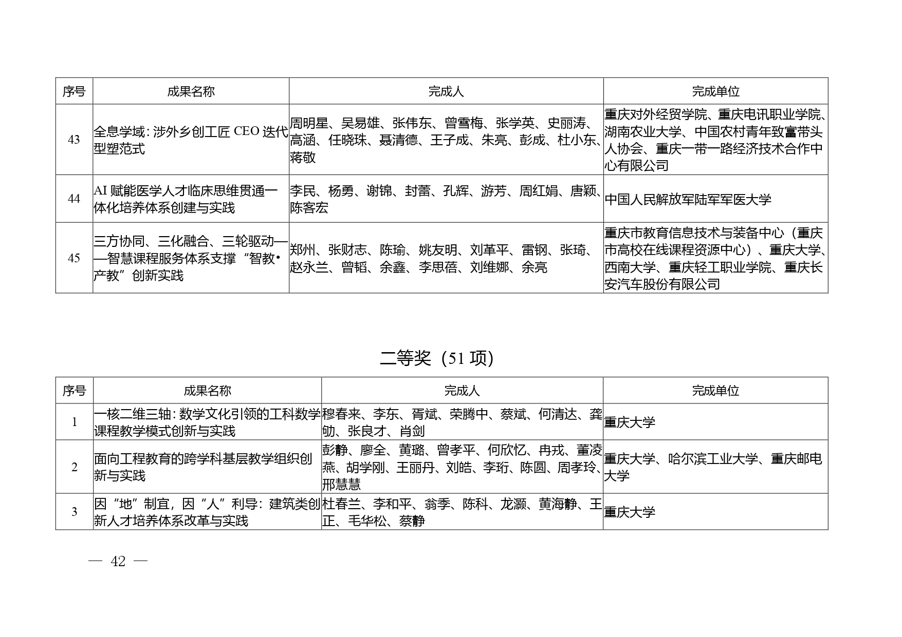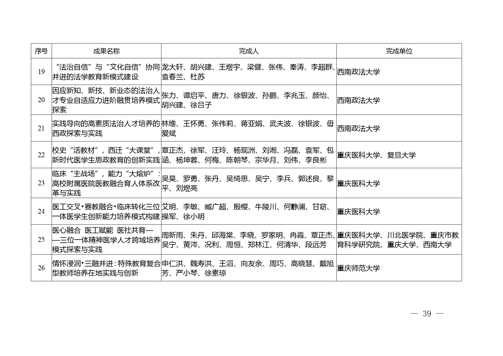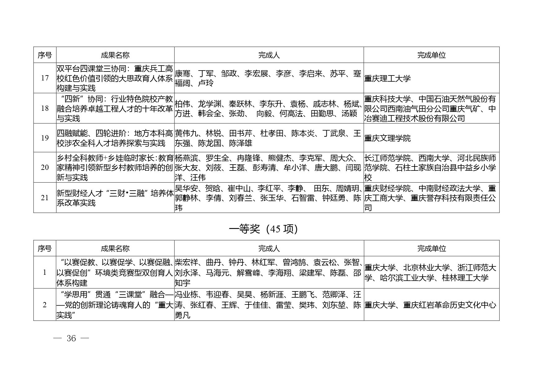 本科特等奖21项!2025重庆市教学成果奖拟获奖项目名单公示