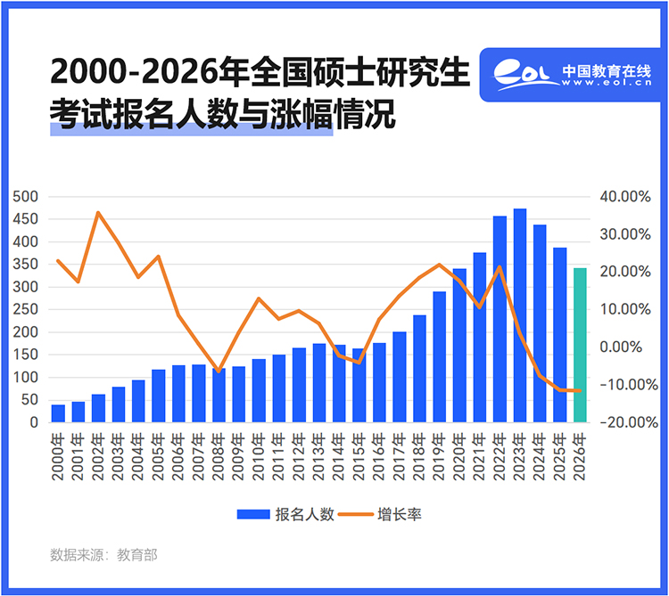据统计,2026年全国硕士研究生招生考试报名人数为343万。