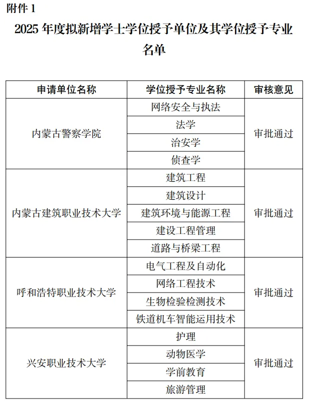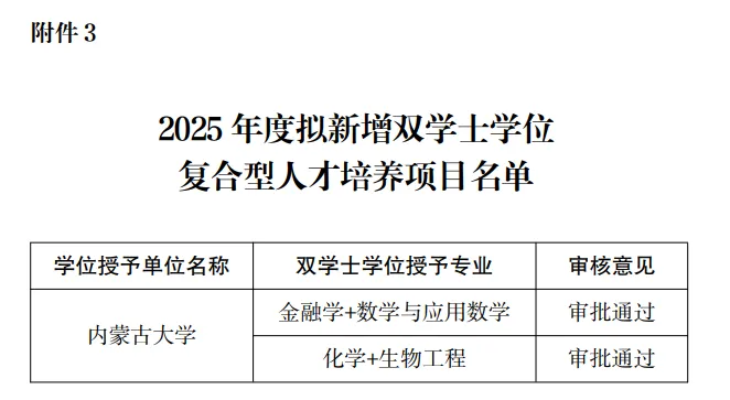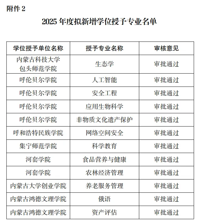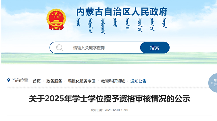 近日,内蒙古自治区教育厅发布《关于2025年学士学位授予资格审核情况的公示》。