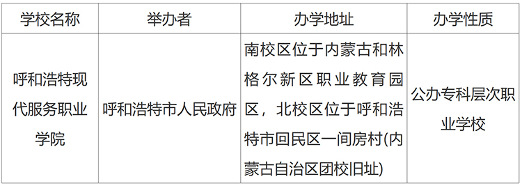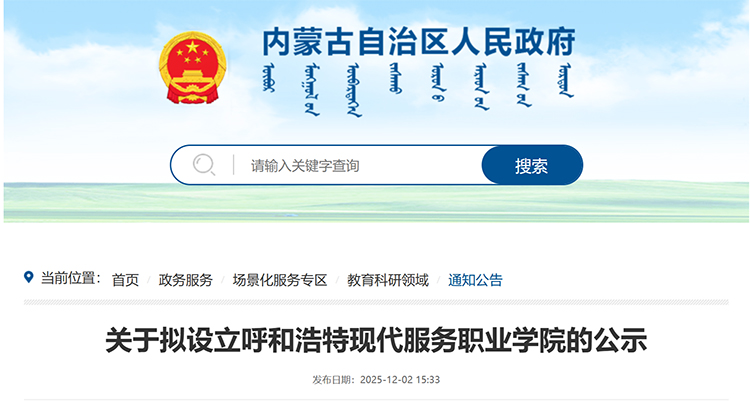 12月2日,内蒙古自治区教育厅发布《关于拟设立呼和浩特现代服务职业学院的公示》。