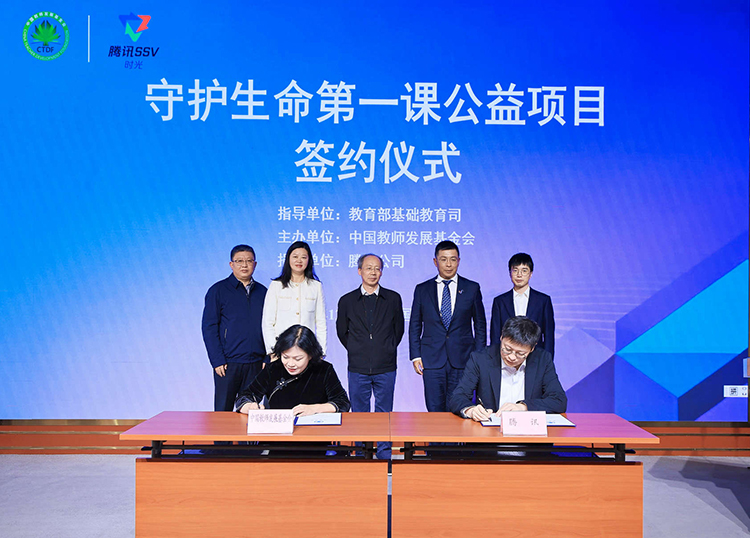 在全场领导嘉宾的共同见证下,中国教师发展基金会秘书长张东燕与腾讯SSV时光实验室副总经理胡晗翰代表双方签署合作协议,标志着守护生命第一课公益项目正式启航。这一举措不仅是一次政企社协同的公益实践,更是全社会共同守护青少年健康成长的庄重承诺。