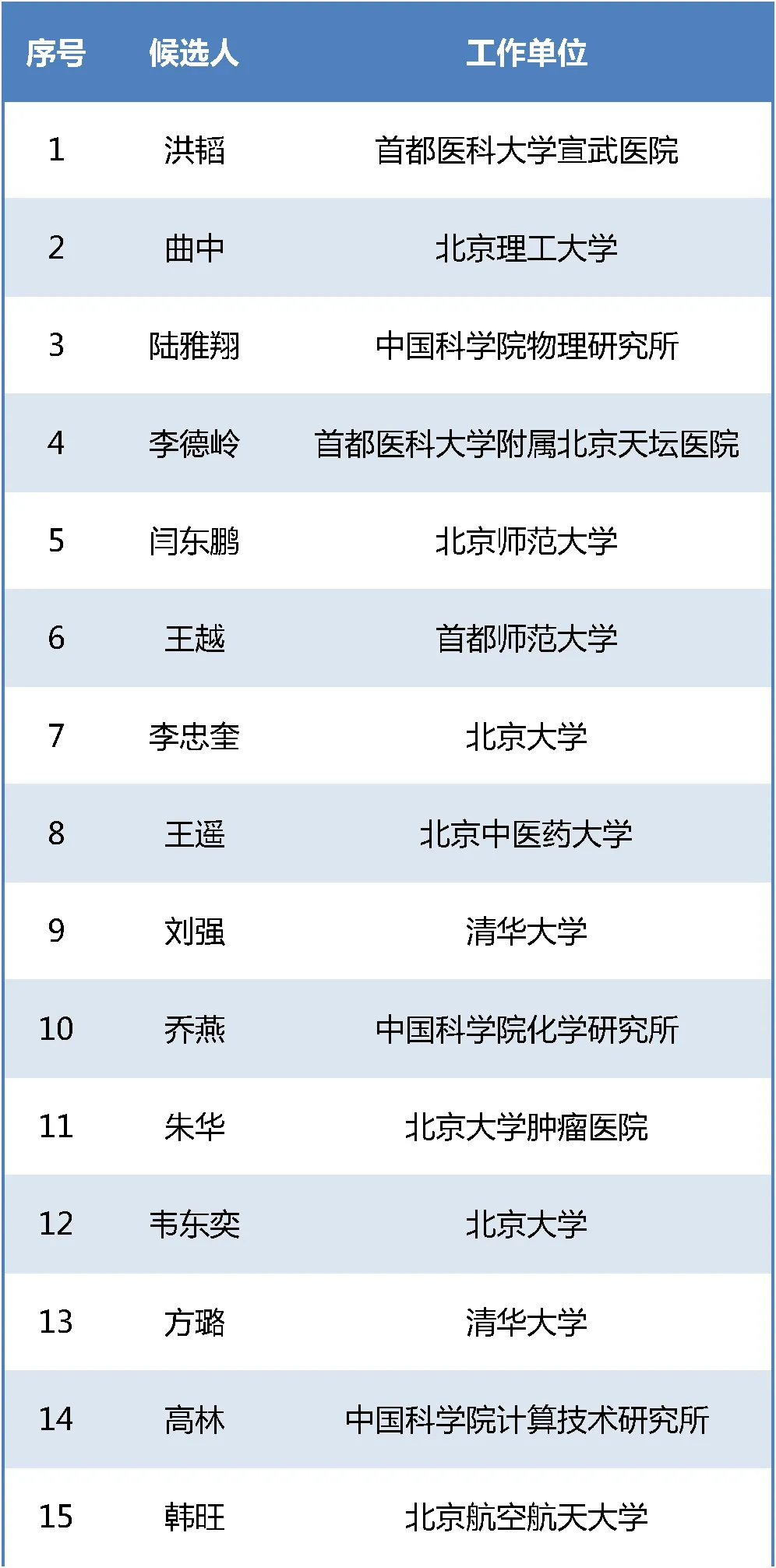 多位高校教师入围!北京科技奖杰出青年奖候选人公布