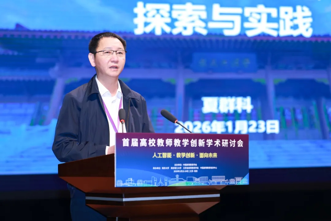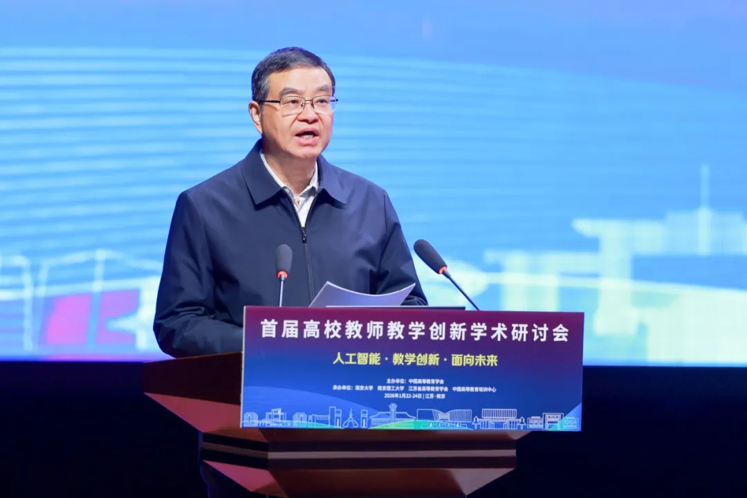 1月23日,中国高等教育学会联合南京大学、南京理工大学、江苏省高等教育学会,以及中国高等教育培训中心共同举办的首届高校教师教学创新学术研讨会在南京开幕。研讨会主题为“人工智能·教学创新·面向未来”。教育部高等教育司副司长武世兴,教育部教育质量评估中心主任徐维清,学会副会长、秘书长李楠,中国科学院院士、南京大学校长谈哲敏,江苏省教育厅二级巡视员张鲤鲤,武汉理工大学原校长杨宗凯,浙江大学副校长夏群科,天津大学副校长李斌,复旦大学原副校长徐雷,南京理工大学副校长李强出席研讨会。会议由江苏省高等教育学会会长丁晓昌、南京大学副校长陆现彩主持。