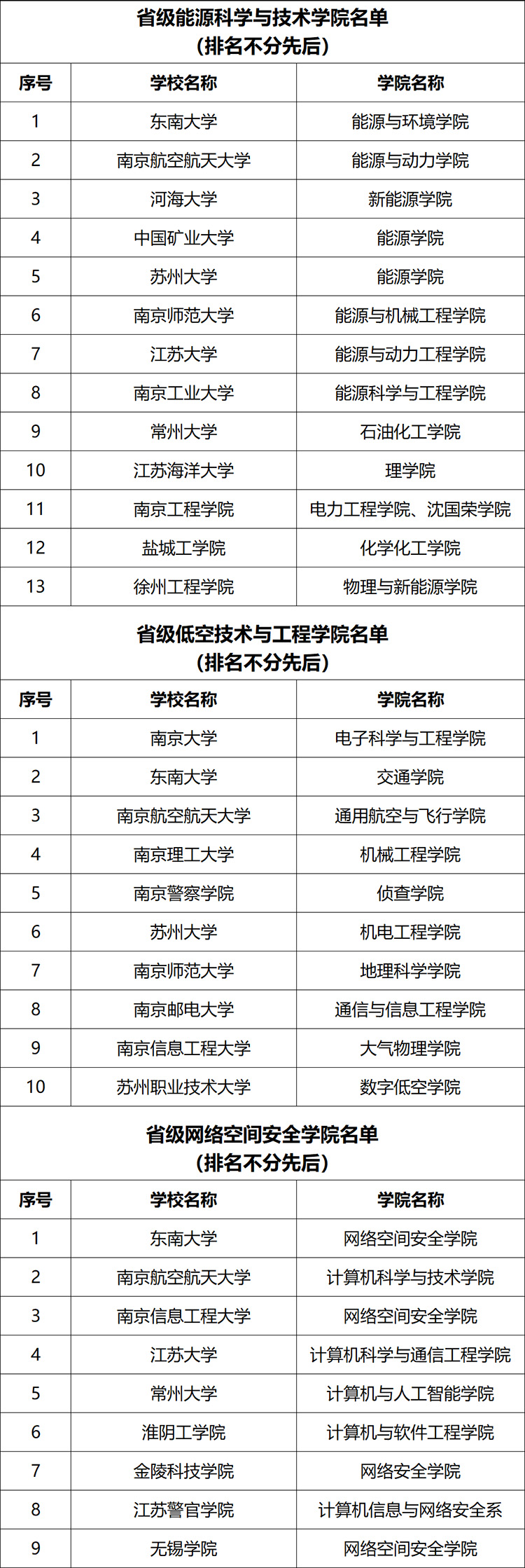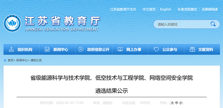 近日,江苏省教育厅发布《省级能源科学与技术学院、低空技术与工程学院、网络空间安全学院遴选结果公示》。经高校申报、材料初审、专家审核等程序,拟立项建设13个省级能源科学与技术学院、10个省级低空技术与工程学院、9个省级网络空间安全学院。