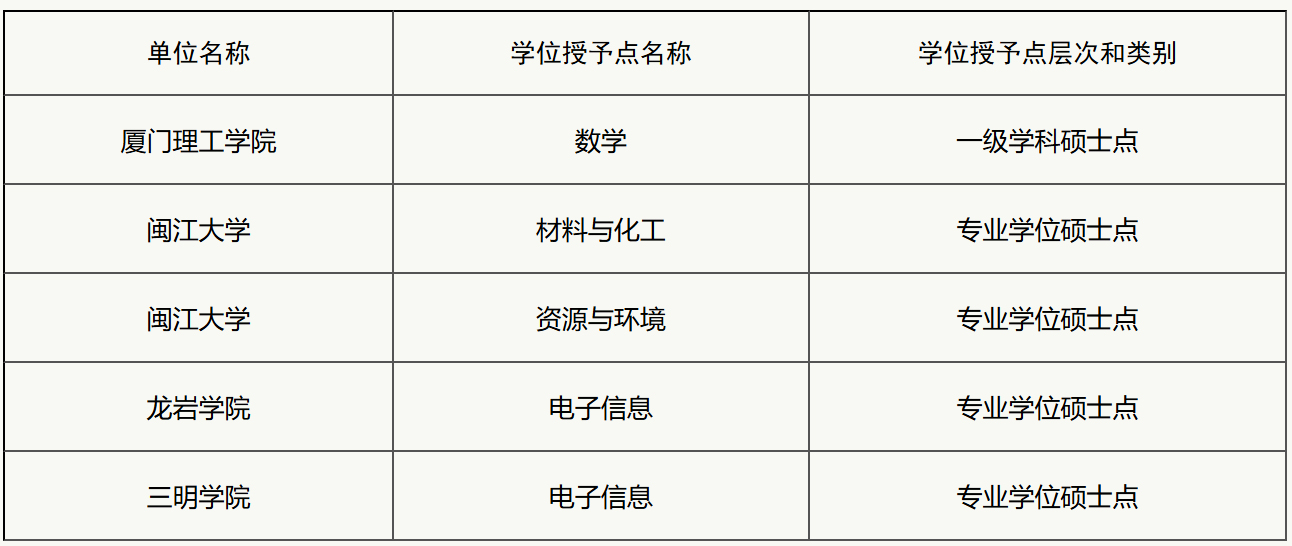 福建省学位委员会办公室关于2026年度学位授予点动态调整省级统筹增设硕士学位授予点推荐名单的公示