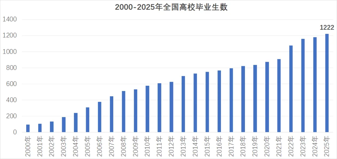 △2025届高校毕业生规模1222万人今年的政府工作报告中,就业目标也仅有1200万。也就是说,解决了大学生的就业问题,也就基本解决了民生问题。伴随高等教育的普及化,中国的就业问题已经基本变成了大学生的就业问题。