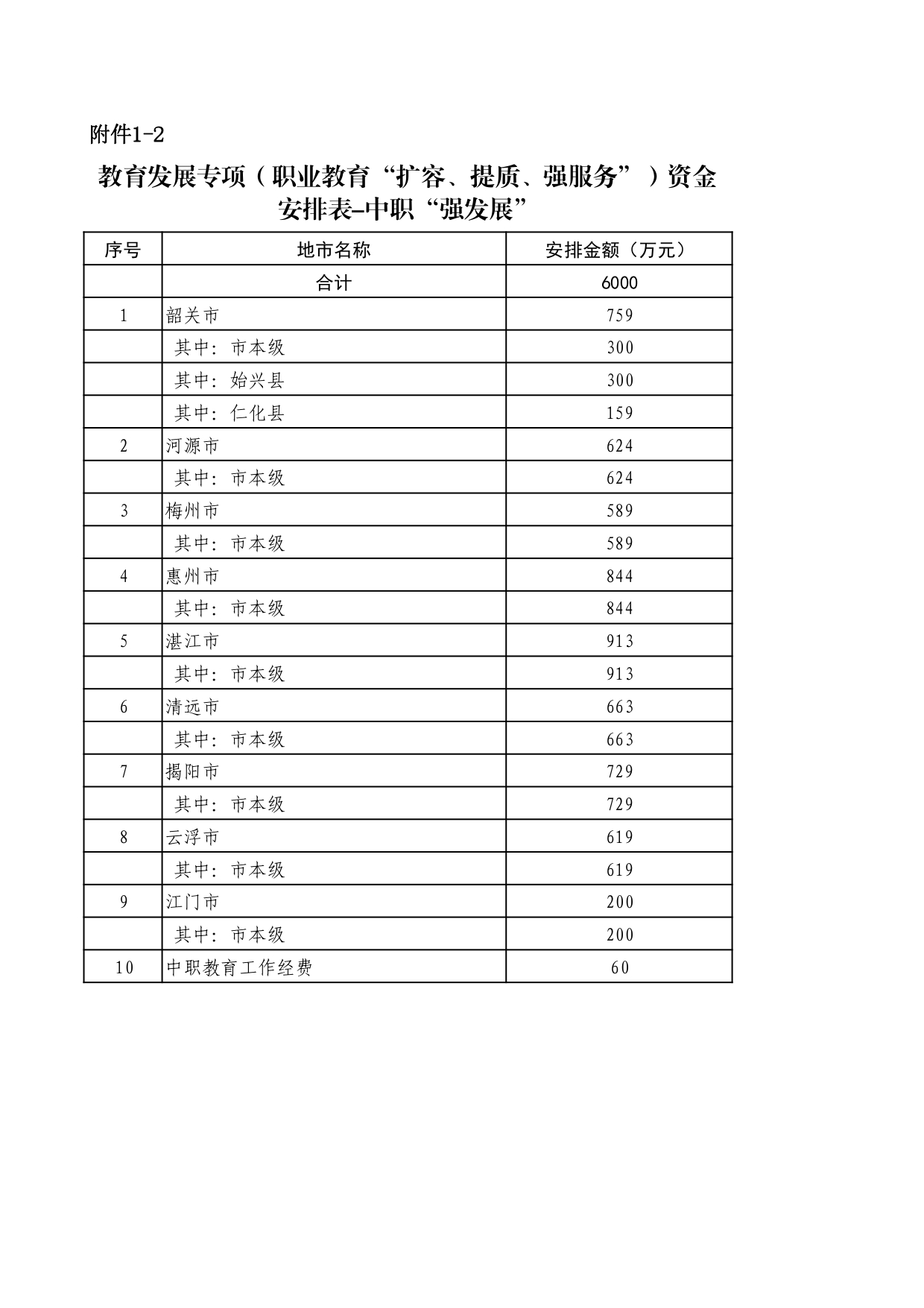 此外,广东拟安排给中职“强发展”的资金6000万元,覆盖韶关、河源、梅州、惠州、湛江、清远、揭阳、云浮、江门9个地市。