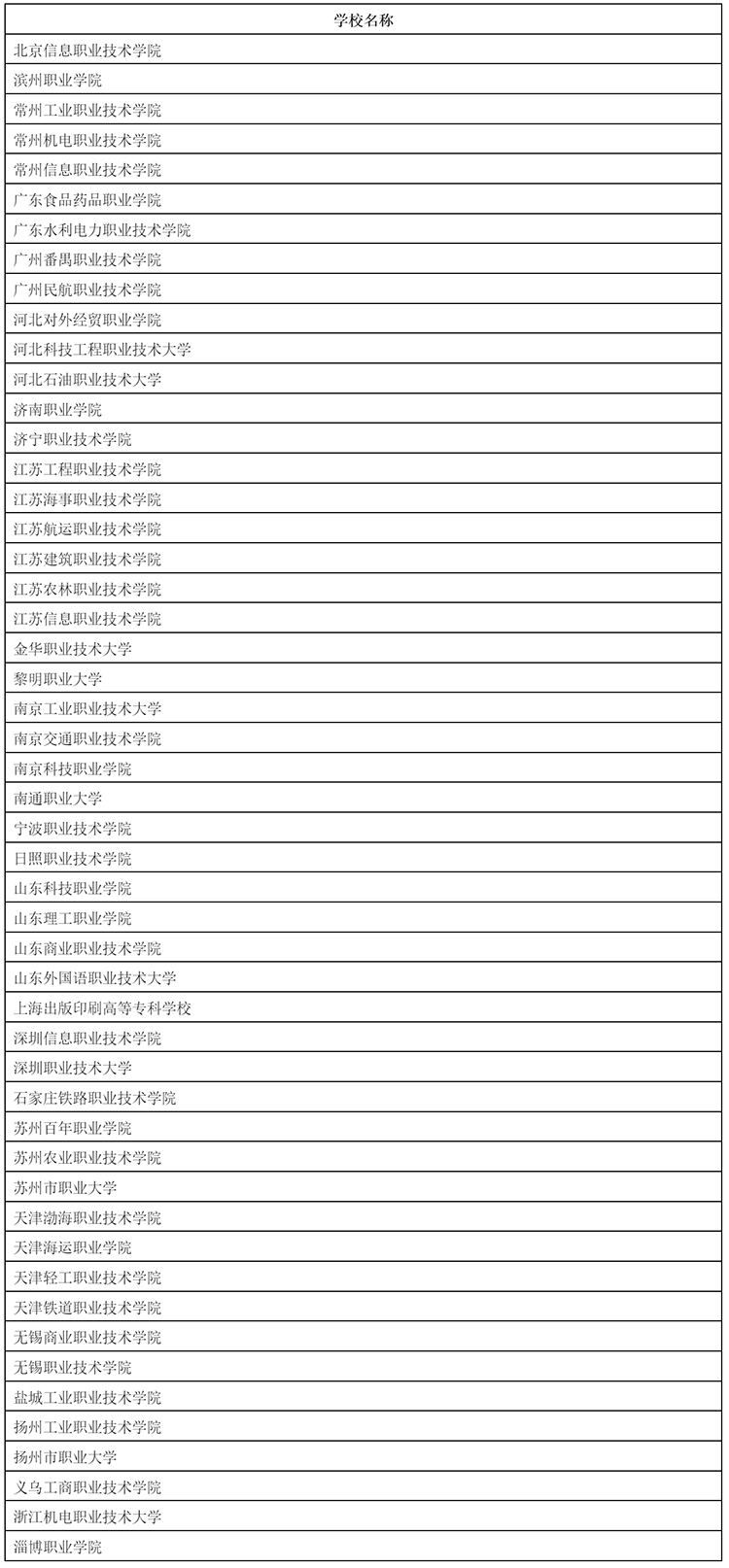 表A 国际合作卓越高等职业学校(东部地区)