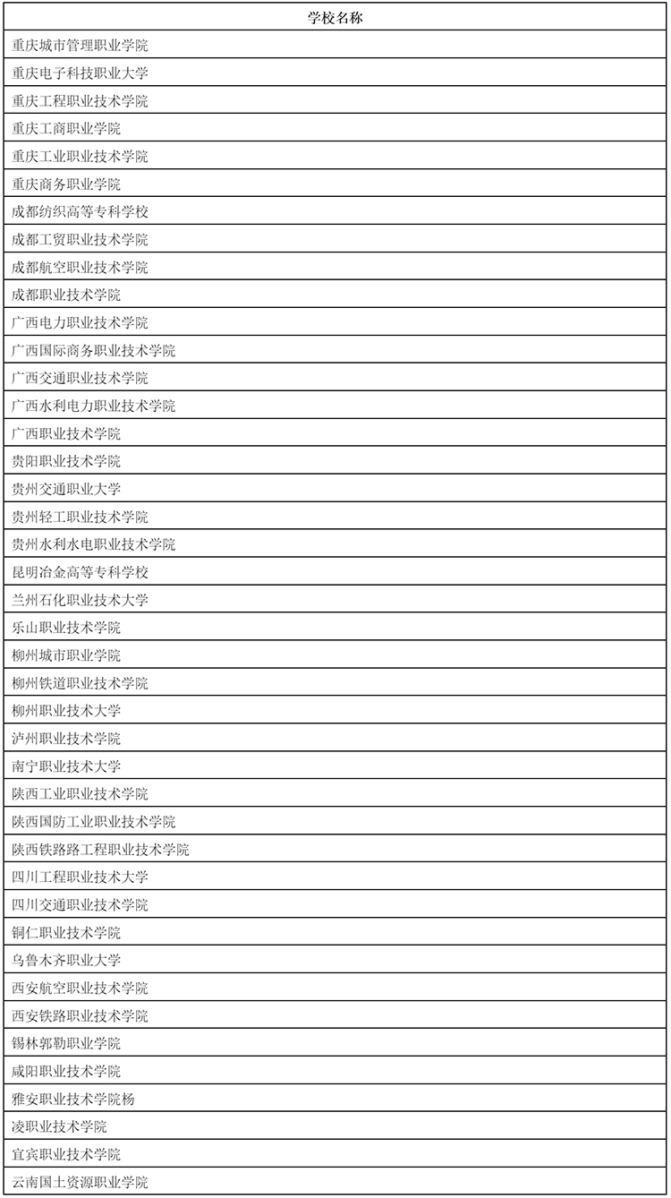 表C 国际合作卓越高等职业学校(西部地区)