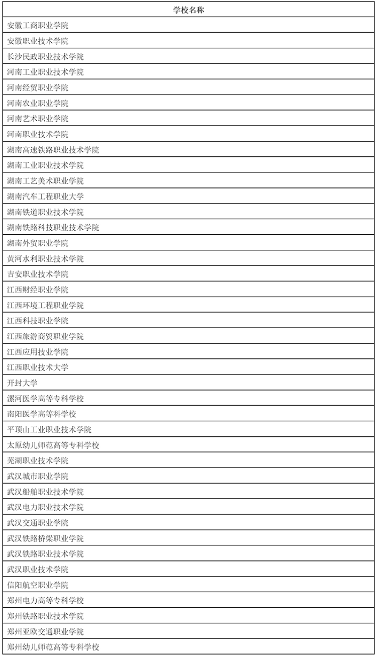 表B 国际合作卓越高等职业学校(中部地区)