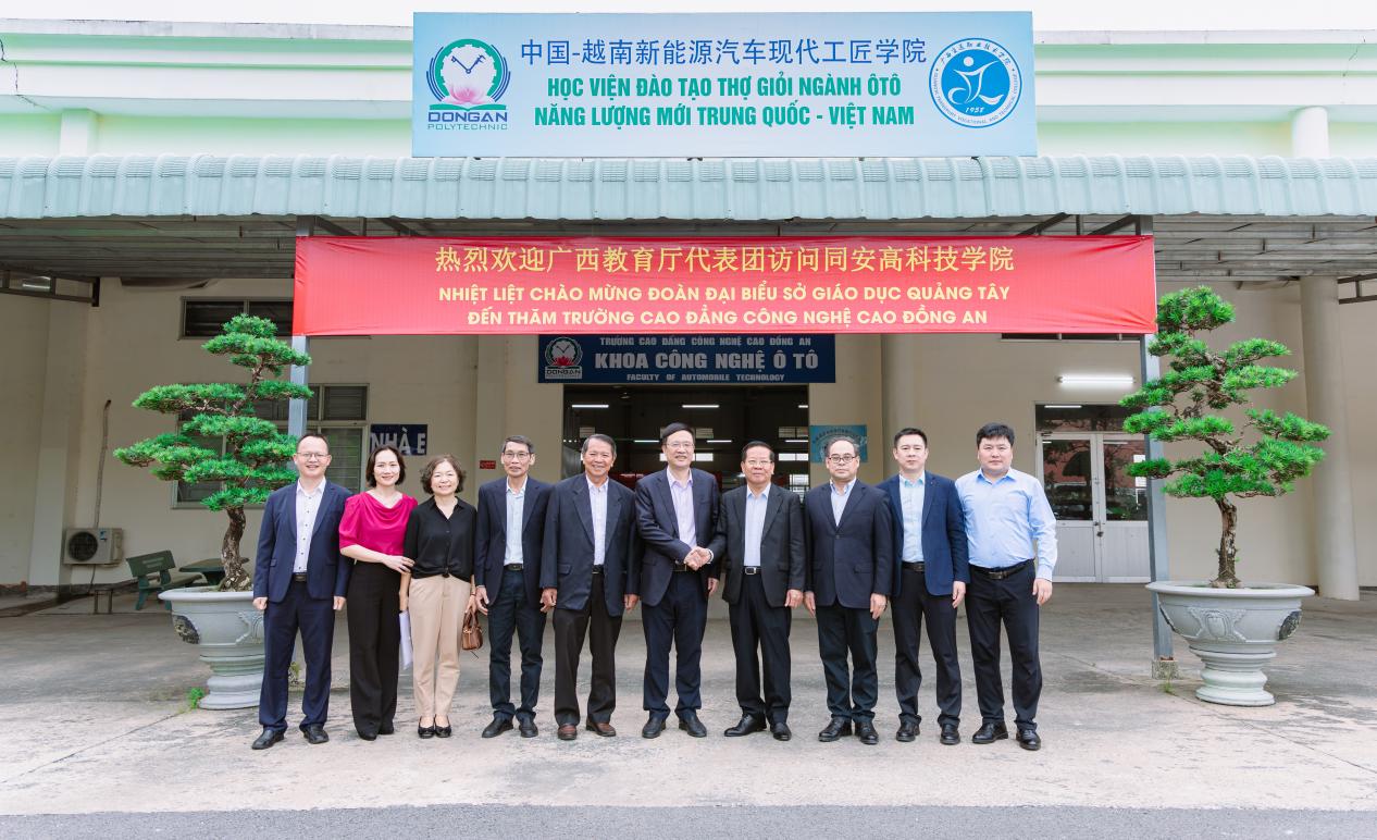 图3 广西教育厅厅长刘友谊(左六)到越南指导新能源汽车现代工匠学院建设,并对学校现代工匠学院建设表示了高度肯定