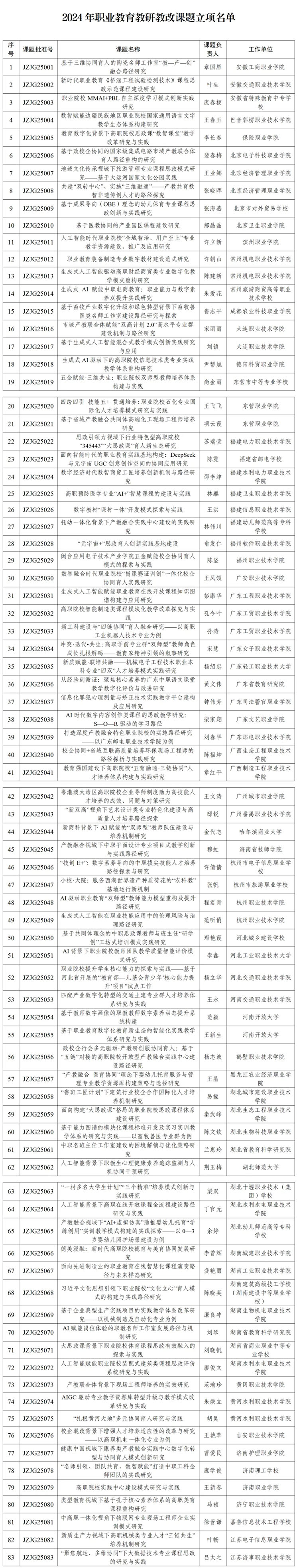 6月9日,教育部职业教育发展中心发布2024年职业教育教研教改课题立项名单,具体情况如下: