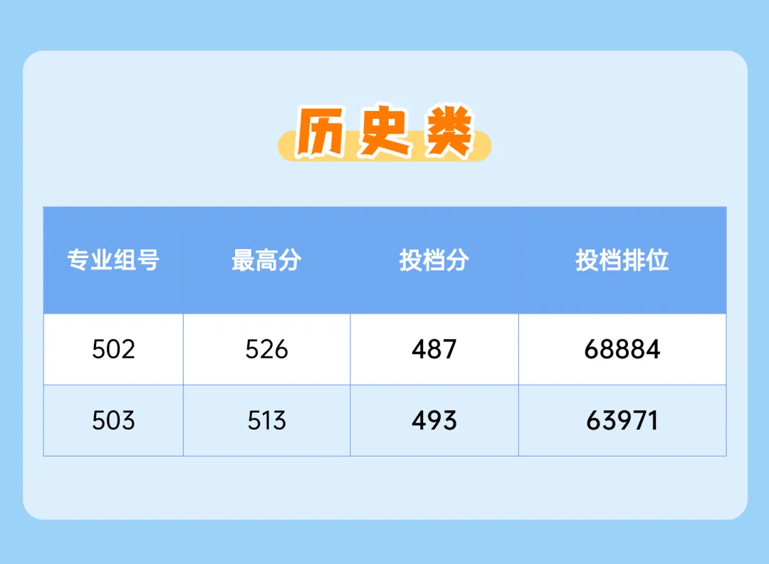历史类专业组最高投档分为跨境电子商务专业,最高投档分为526分,超本科控制线62分;最低投档分为487分,超本科控制线23分。其他历史类热门专业报考投档人数大幅高于计划招生人数,其中大数据与会计专业尤为突出。