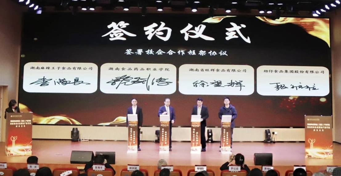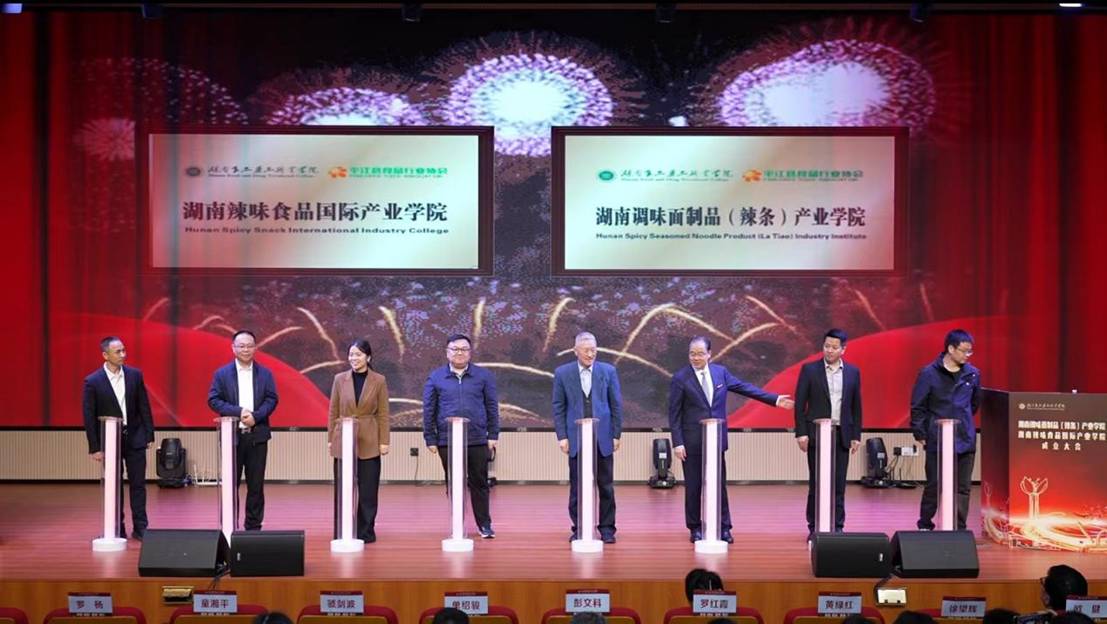 2025年11月8日,湖南辣味零食国际产业学院、湖南调味面制品(辣条)产业学院揭牌仪式在湖南食品药品职业学院隆重举行。两大产业学院由学校和平江县食品行业协会牵头,联合劲仔食品集团股份有限公司、湖南麻辣王子食品有限公司、湖南省旺辉食品有限公司等头部企业共同组建,依托学院食品专业优势,践行国家职教出海战略,标志着湖南辣味食品产业在“政校企协同、产学研融合、国际化布局”道路上迈出关键一步,为千亿级产业全球升级注入强劲动能。