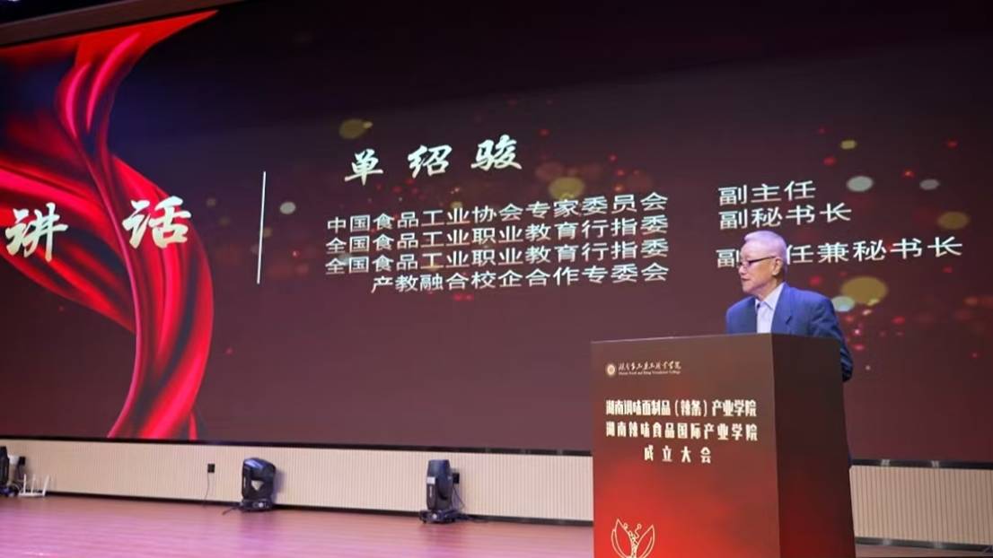 中国食品工业协会专家委员会副主任、全国食品工业职业教育行指委副秘书长、产教融合校企合作专委会副主任兼秘书长单绍骏对此次合作的创新价值给予高度肯定。他表示,湖南两大辣味产业学院的组建,为食品行业产教融合提供了可复制的“湖南范本”,既回应了产业对紧缺人才的需求,又拓展了职教出海的实践路径,必将推动职业教育与产业发展深度共生共融。