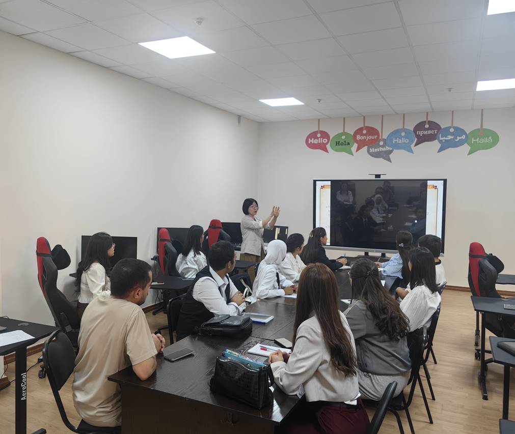 与此同时,学院基础部教师宁贵霞于9月14日至10月10日开展了中国传统文化课程。文化课程内容丰富多元,包含汉语基础教学、传统节日习俗分享、扎染工艺实操等多个模块。通过互动式、体验式的教学方法,乌兹别克斯坦师生不仅学习了汉语基础知识,更深入体验了中国传统文化的独特魅力,有效增进了中乌文化交流与相互理解。