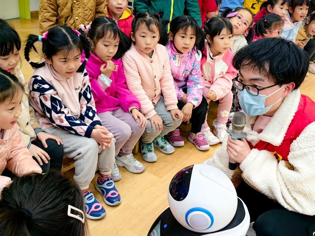 志愿者送教入校,为小学和幼儿园学生提供智能机器人职业体验(由学校供图)